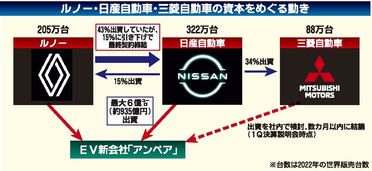 日産自動車は、出資比率を対等にするなどアライアンスの見直しでルノーと最終合意した。2023年中に完了させる。ルノーによる電気自動車(EV)の分社化構想を機に始まった交渉は計画から4カ月遅れながらもまとまった。経営危機に陥った日産にルノーが...
