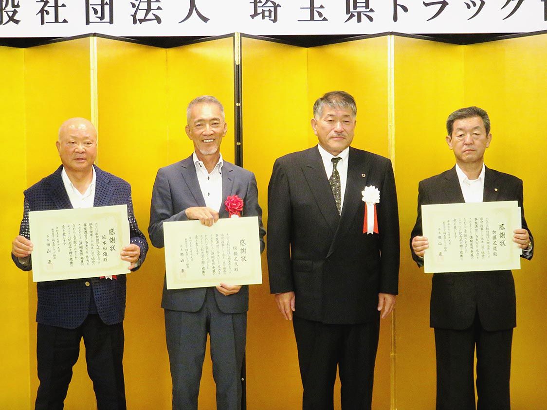 【さいたま】埼玉県トラック協会(瀬山豪会長)は、さいたま市浦和区内のホテルで「令和5年度退任理事・監事・評議員感謝の集い」を催した。退任した役員は次の通り。 ▽理事=加藤正道(拓洋)、加地昭俊(新興運送)、三上範幸(三上商運)、本澤晴美(...