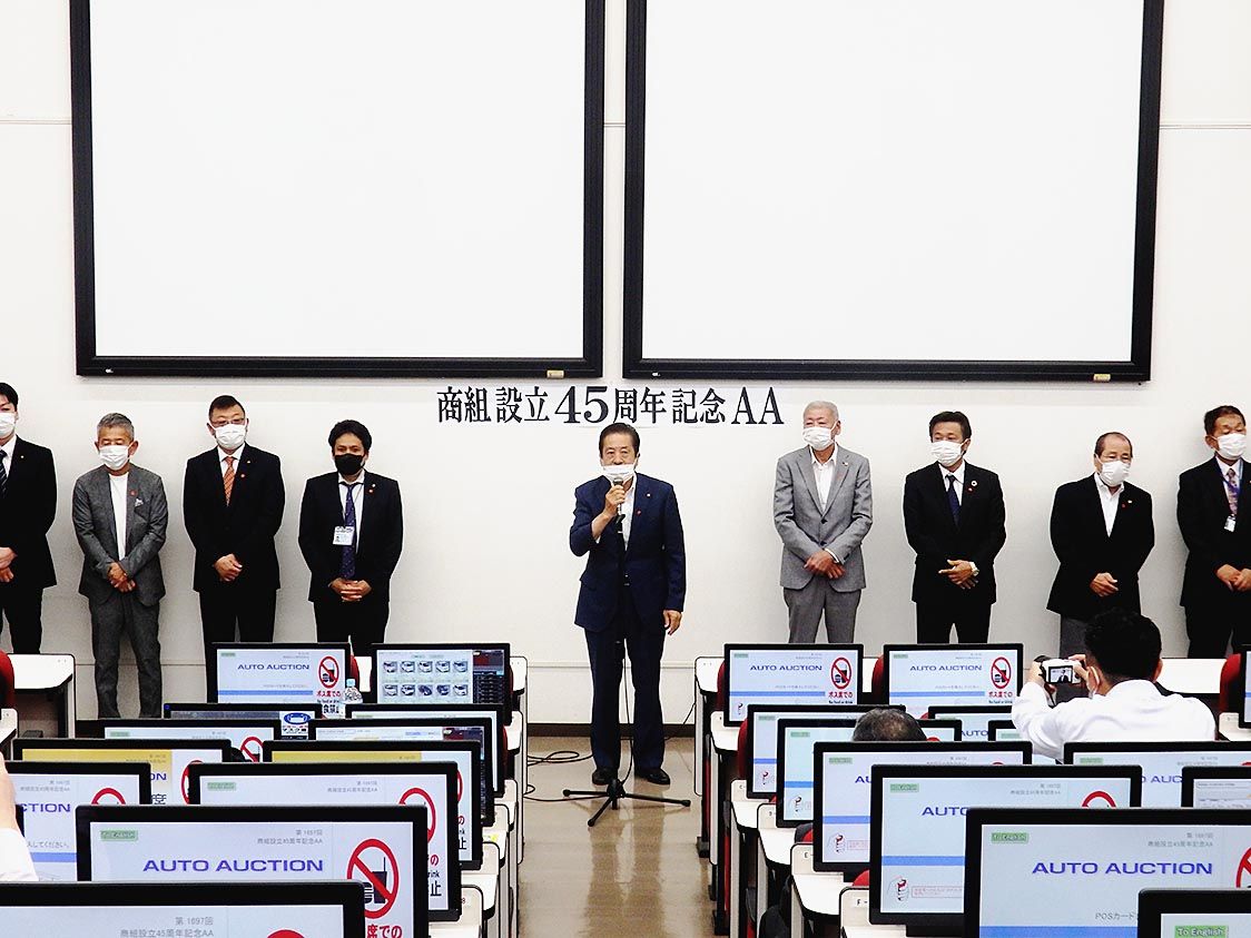 【奈良】JU奈良は大和郡山市の常設オートオークション(AA)会場で、JU近畿公認「商組設立45周年記念AA」を開催した=写真。出品台数は410台で、成約率は59・0%に達した。成約単価は37万円だった。 競り開始前のセレモニーには、JU近...