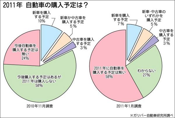 ガリバー自動車研究所(鈴木詳一所長、東京都千代田区)はこのほど、ユーザーを対象に自動車購入に対する意識調査を実施して結果をまとめた。これによると、2011年に新車または中古車を購入する予定があると回答したのは全体の15%で、前回調査の10...