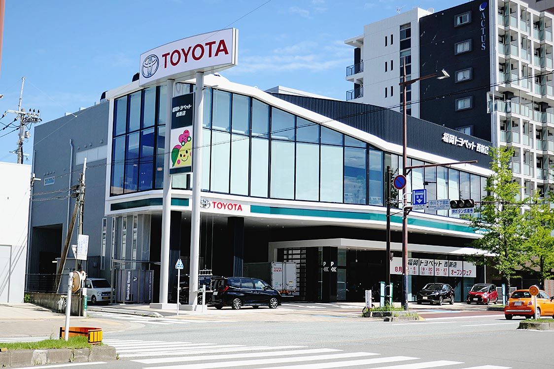 福岡トヨペット、西新店を移転・新築 旧拠点の3倍の広さ 駐車スペースも40台規模に
