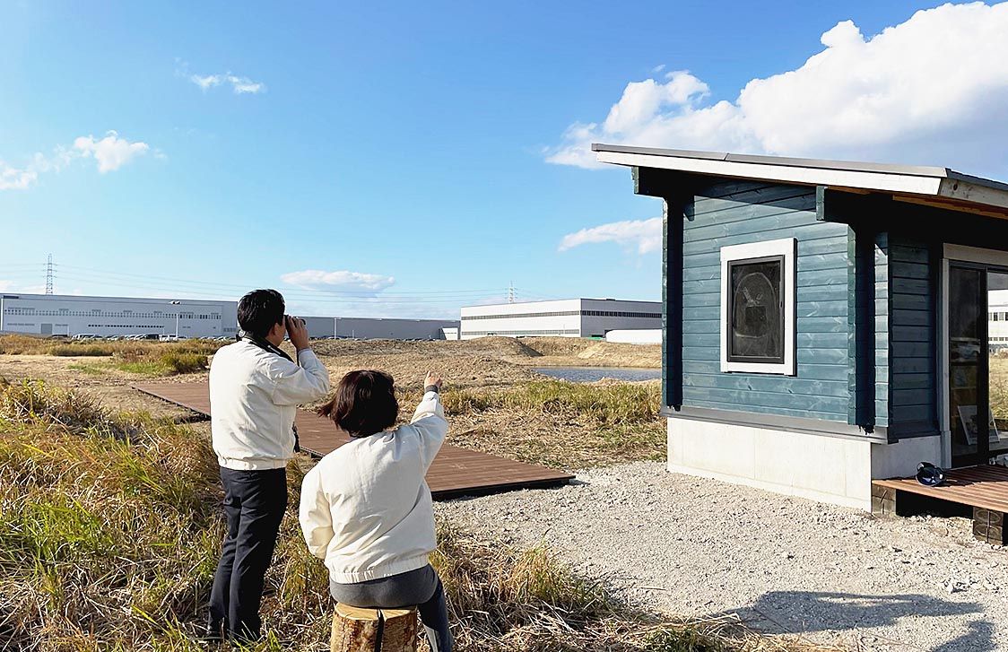 鳥類の安定した生息環境を確保するとともに、社員や地域住民、子どもたちが生きものと触れ合える場とすることで生物多様性保全に対する理解促進を図る目的もある。人と鳥類との明確な線引きをする観察小屋やボードウオーク、散策路なども整備している。