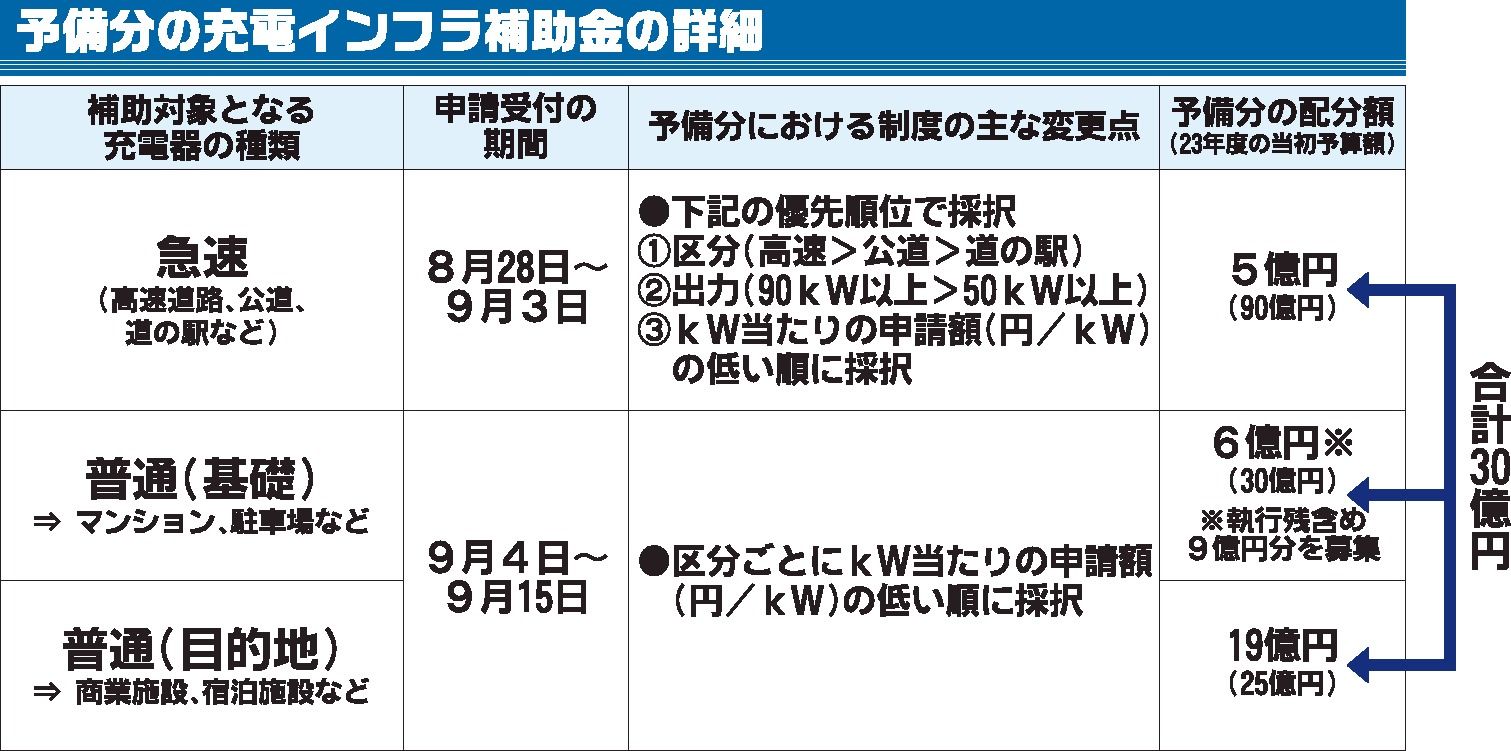 経済産業省は、電気自動車(EV)用充電インフラ補助金の受け付けを8月末から再開する方針を固めた。「予備分」として確保していた30億円を充てる。再開に当たり、補助金の交付先をこれまでの申請順から、高出力充電器の普及を広げる形に審査を改める。...