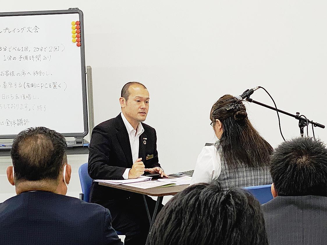 【福島】福島ダイハツ(川村幸司社長)は、自社拠点で直販営業担当の社員を対象にしたロールプレーイング大会を開催した=写真。直販の7店舗からそれぞれ1人が参加し、分かりやすい内容で残価型クレジットでの購入に誘導できるかを評価した。その結果、最...