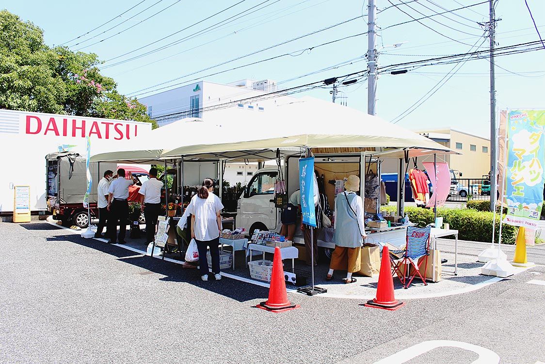 【東京】ダイハツ東京(小林幸彦社長)は5、6日、葛飾区の水元店で「ぷちマルシェ」を開催した。地域の3店舗が参加し、移動販売専用車「Nibako(ニバコ)」に生花や雑貨、豆腐などの食品を並べ、それぞれ販売した=写真。 同店でのぷちマルシェ開...