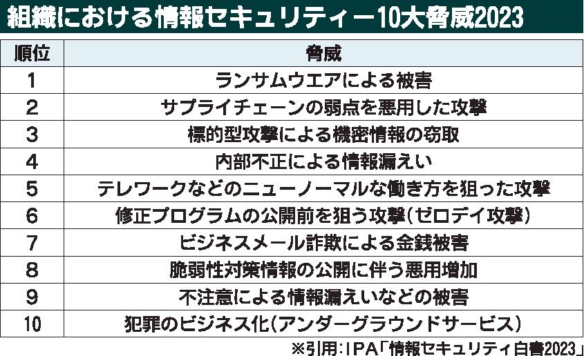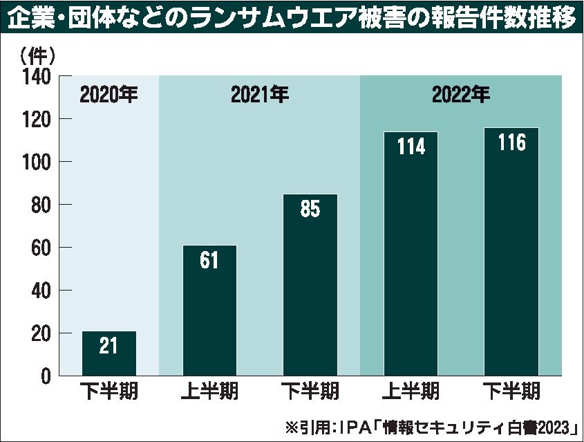 情報処理推進機構(IPA)がまとめた「情報セキュリティ白書2023」によると、22年に警視庁に報告されたランサムウエア(身代金要求型ウイルス)被害を受けた国内企業や団体などは前年比57・5%増の230件だった。業種別では製造業が最多で全体...