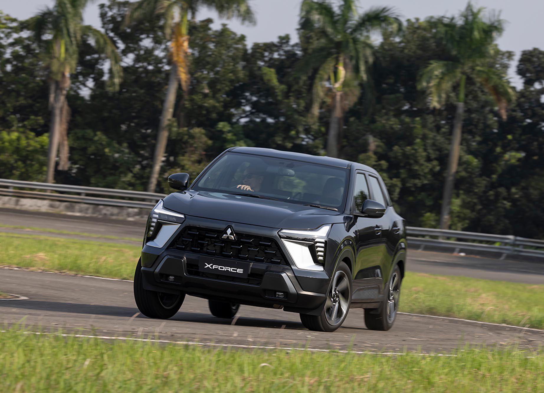 三菱自動車が8月10日に「ガイキンド国際モーターショー2023」で世界初披露した新型コンパクトSUV「エクスフォース」を写真で紹介する。