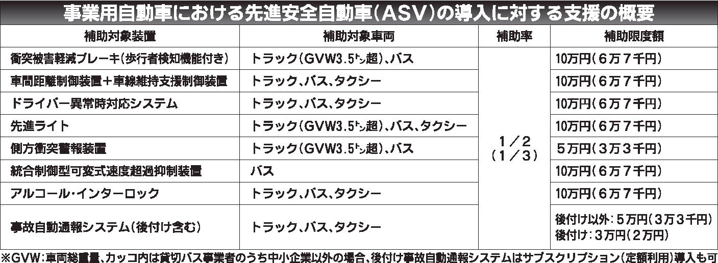 国土交通省は、中小の自動車運送事業者などを対象とした事業用の先進安全自動車(ASV)導入補助の申請受け付けをこのほど始めた。今年4月から来年1月末までに新車新規登録した車両のうち、一定の要件を満たす予防安全装置に必要な費用を最大で半額補助...
