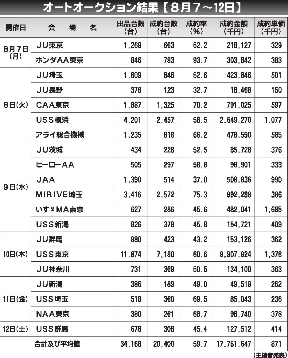 〈オートオークション結果〉首都圏 2023/8/7~12