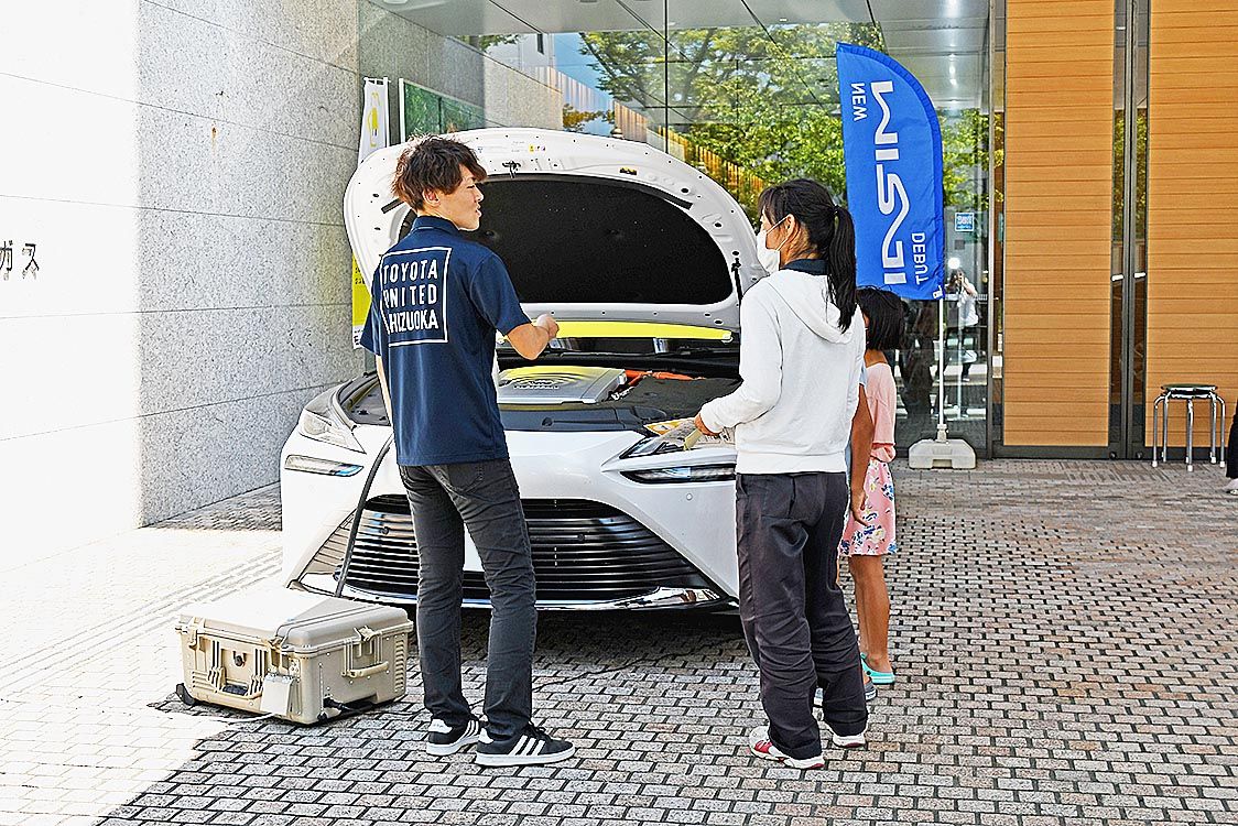 【静岡】静岡トヨタ(太田勝之社長)とトヨタユナイテッド静岡(桝谷安城社長)は、静岡ガスが開催した夏休みの自由研究イベントに燃料電池車(FCV)「ミライ」を出展、燃料電池の学習に協力した=写真。参加した県内在住の小学生はミライの試乗や燃料電...