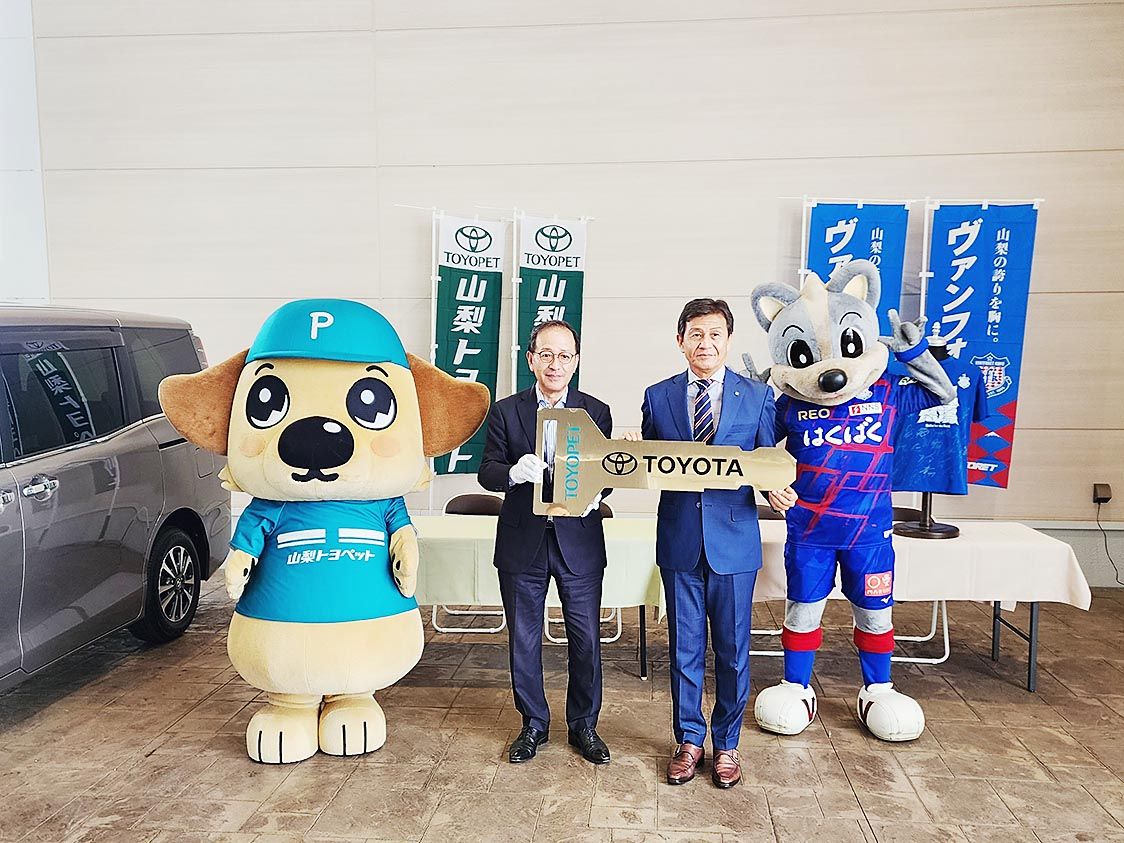 山梨トヨペット(髙野孫左ヱ門社長)は、サッカーのヴァンフォーレ甲府(VFK)へトヨタ「エスクァイア」1台を提供した。初参戦のAFCチャンピオンズリーグでの活躍をサポートする。式典は14回目で、同社は社会貢献とする車両提供も含めてVFKを応...