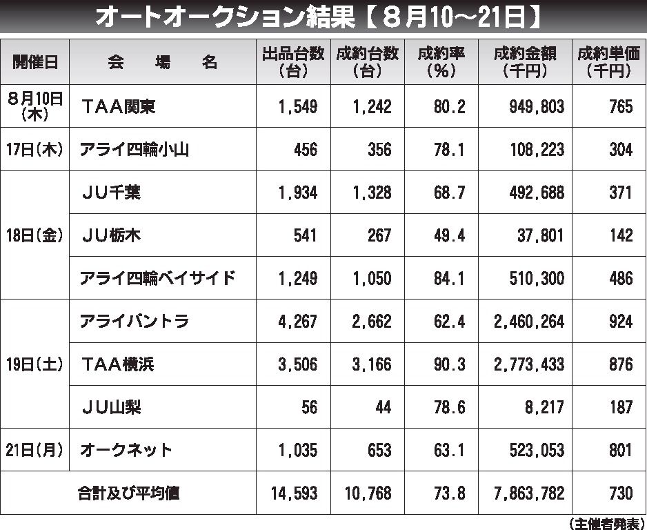 〈オートオークション結果〉首都圏 2023/8/10~21