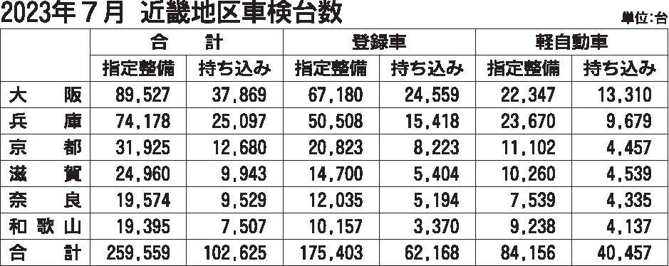 近畿2府4県の7月の継続検査(車検)台数(軽自動車を含む)は、前年同月比2・2%増の36万2184台で、2カ月ぶりに前年を上回った。登録車は同1・2%増の23万7571台で2カ月ぶりのプラス、軽は同4・3%増の12万4613台で7カ月連続...