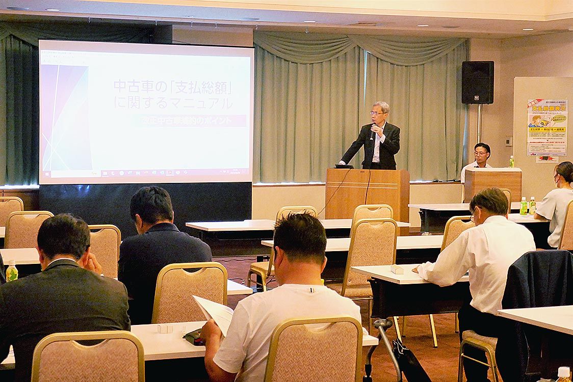【神戸】兵庫県中古自動車販売協会・同商工組合(JU兵庫、森本義則会長・理事長)は、会員・組合員向けに中古車の支払総額表示に関する研修会を実施した。10月に施行される中古車の販売価格の表示に関する改正規約・同施行規則について、ポイントや注意...