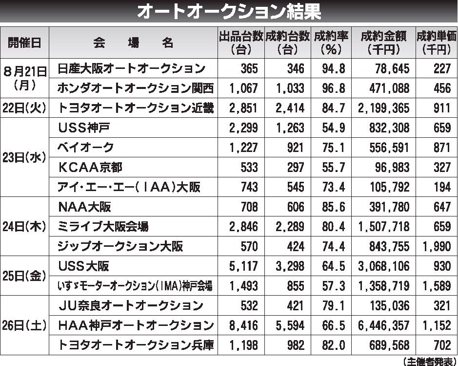 〈オートオークション結果〉近畿地区 2023/8/21~26