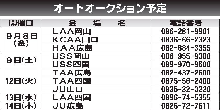〈オートオークション予定〉中四国地区 2023/9/8~14
