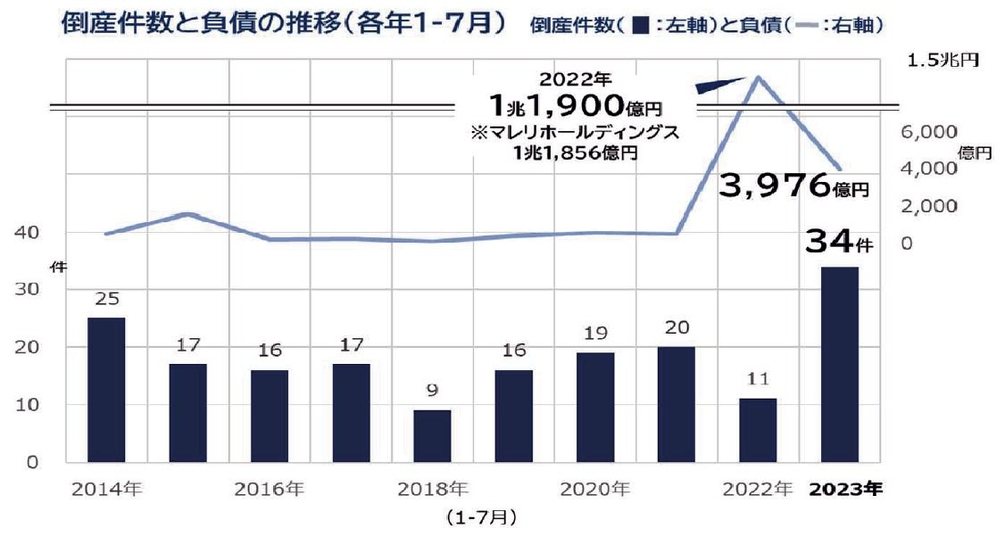 帝国データバンク(後藤信夫社長、東京都港区)は「ファンド出資企業の倒産動向調査」を初めて公表した。2023年1~7月で34件の倒産が判明しており、通年では過去10年で最多となる可能性があるという。負債総額は合わせて3976億円と、過去10...