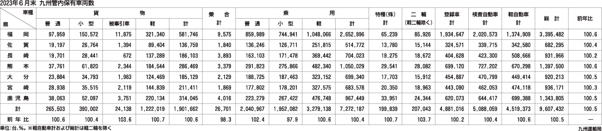 〈2023年6月末 九州管内保有車両数〉
