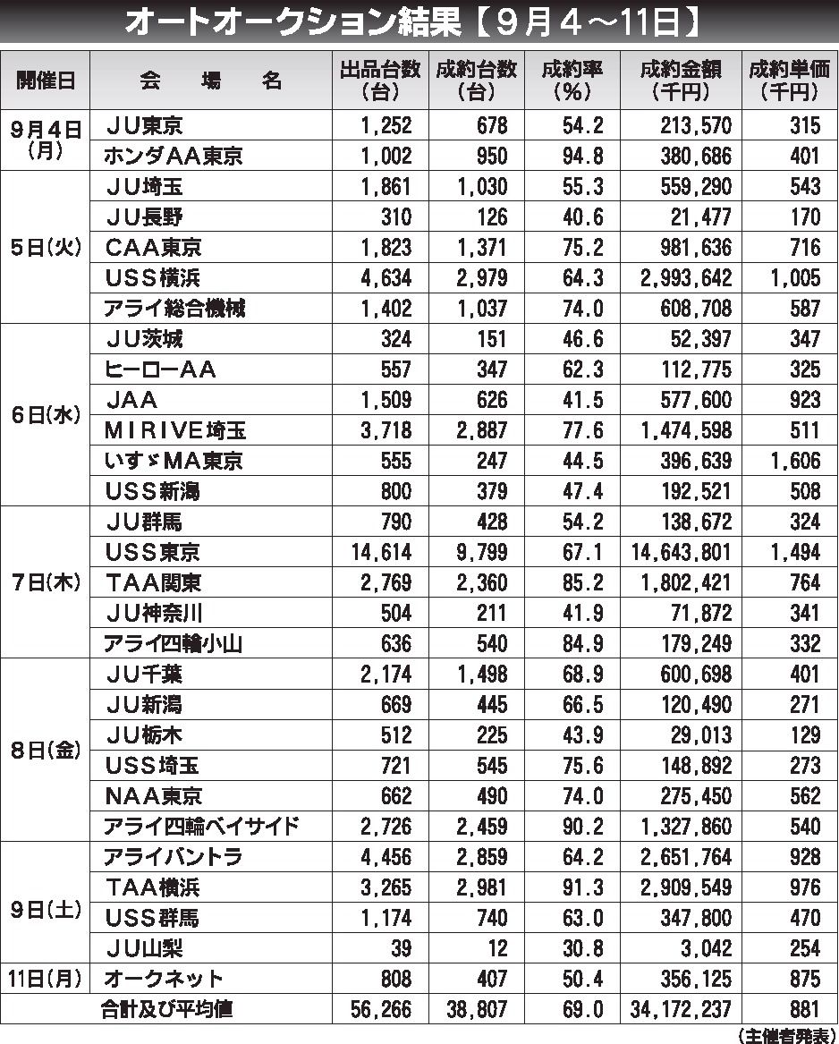 〈オートオークション結果〉首都圏 2023/9/4~11