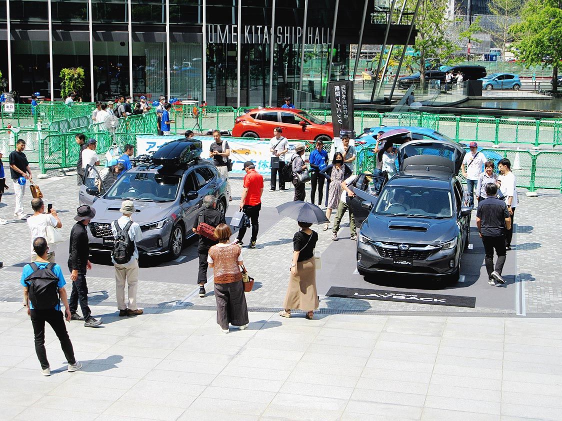 スバルは、JR大阪駅前のグランフロント大阪うめきた広場(大阪市北区)で新型SUV「レヴォーグレイバック」の先行展示イベントを開催した=写真。2台のレイバックをはじめ「レヴォーグ」など最新モデル7台を並べたほか、プリクラッシュブレーキの体感...