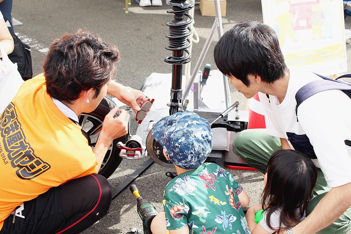 【盛岡】岩手県自動車整備振興会(元持雅行会長)盛岡支部青年部(佐々良晋部会長)は、滝沢市のビッグルーフ滝沢で開かれた地域イベント「滝祭2023」に参加し、より多くの子どもたちに整備士を目指してもらおうと「メカニック体験会」を開催した=写真...
