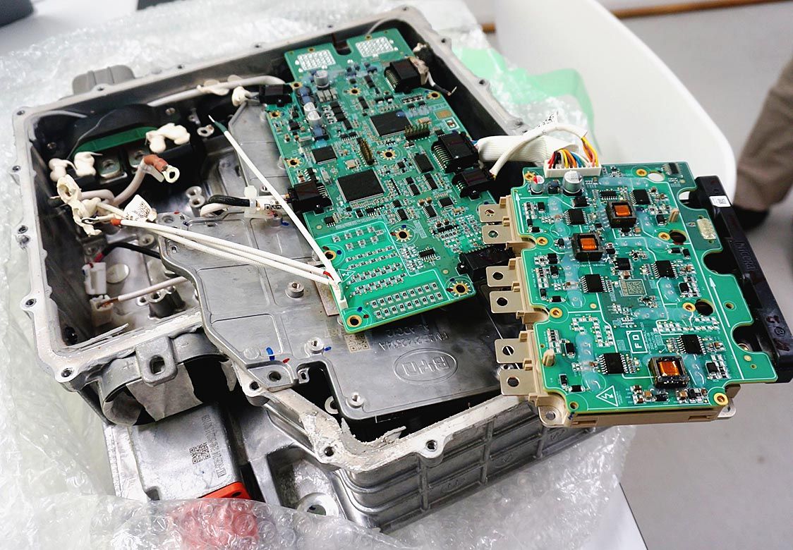 名古屋大学でパワー半導体の応用技術を研究する山本真義教授は、部品メーカーなど自動車業界との共同研究案件を多く抱える。研究の一環として、各社の電気自動車(EV)のインバーターなどをつぶさに分解し、構造などを把握している。海外メーカーの技術動...