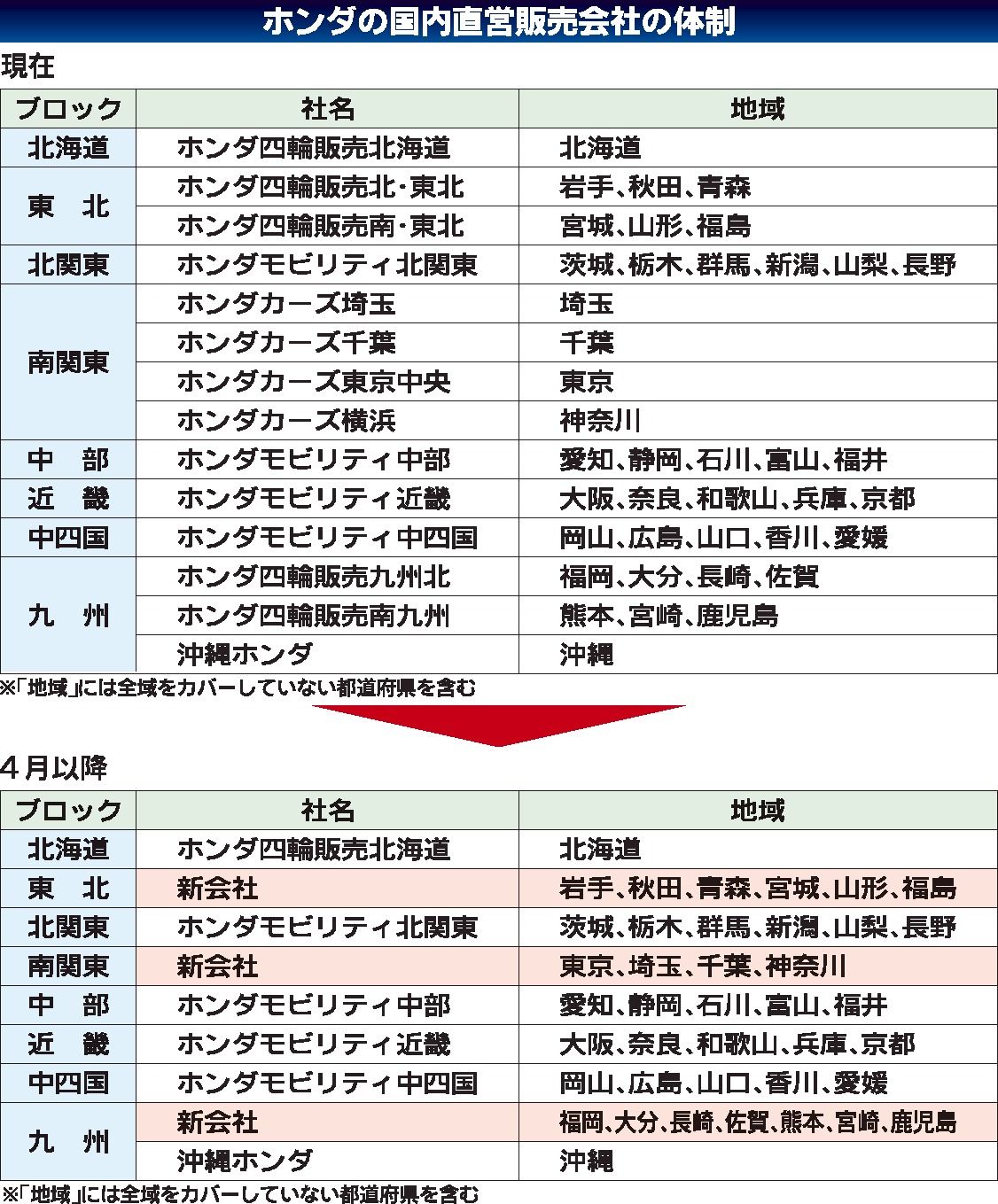 ホンダは2024年4月1日付で南関東、東北、九州(沖縄県除く)の直営販売会社を統合する。今年4月に全国8地域中4地域でそれぞれ直営販社を統合しており、来春の3地域での統合で、直営販社の1ブロック・1社体制への移行が完了する。これに合わせ、...