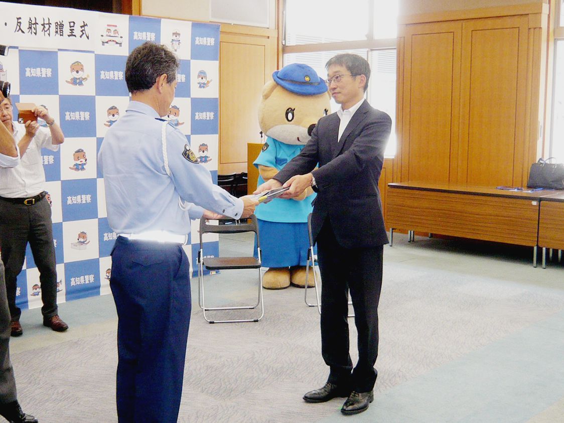 高知損保会、県警に反射材付きチラシ5千枚を寄贈