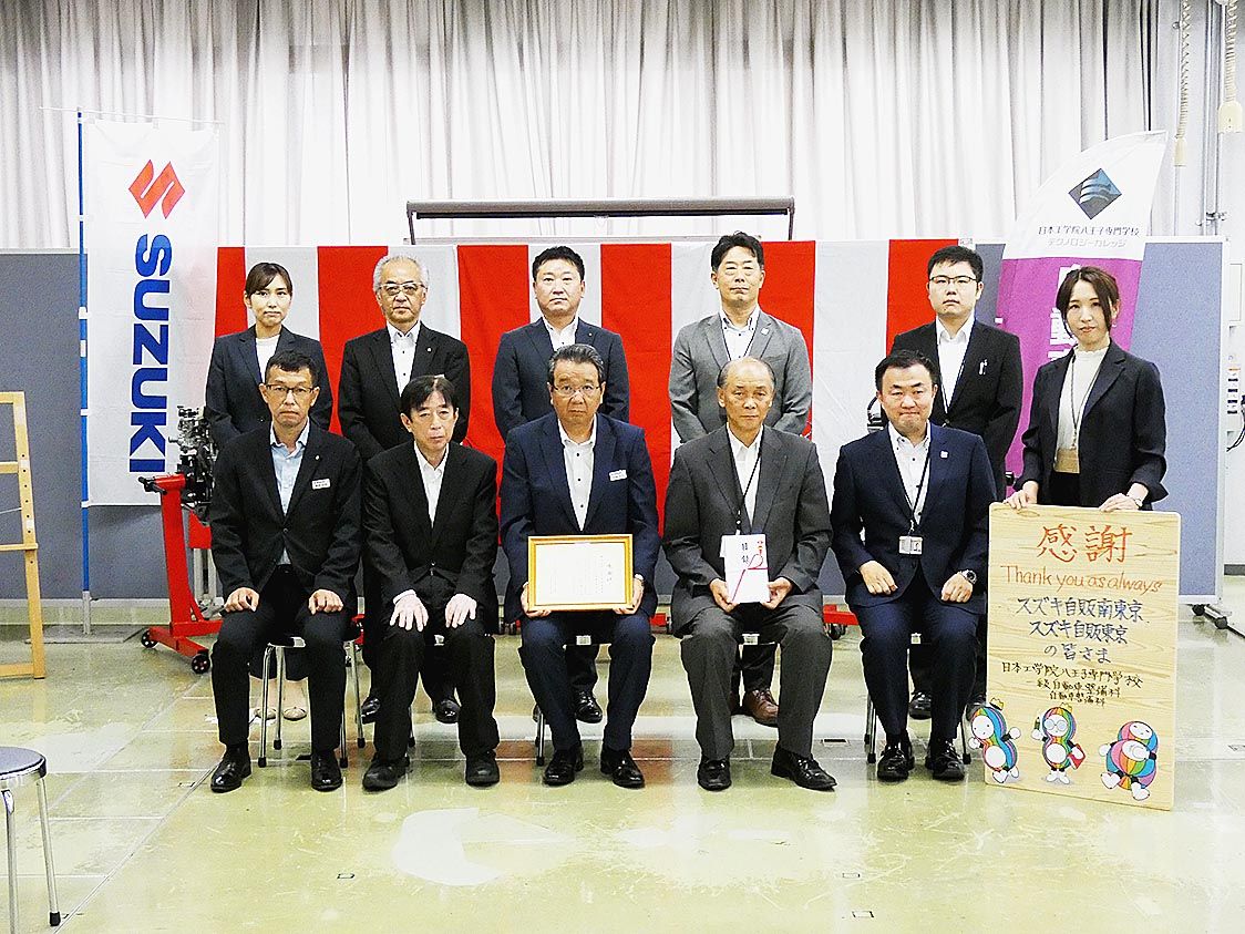 【東京】スズキ自販東京(梅林秀治社長)とスズキ自販南東京(伊藤啓司社長)は、片柳学園日本工学院八王子専門学校(山野大星校長)で「エンジン贈呈式」=写真=を開き、エンジン5基を教材用として寄贈した。 式に出席した伊藤社長が「今回寄贈するエン...