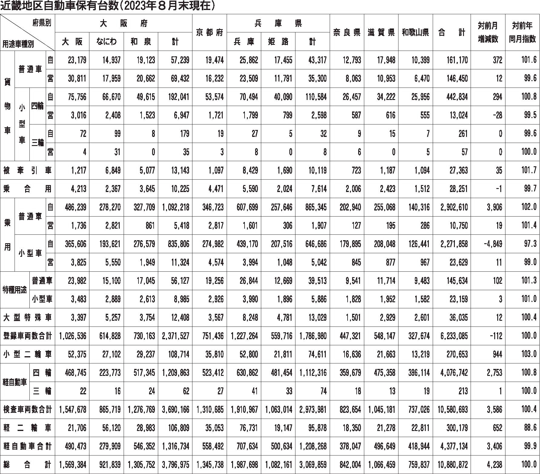 〈近畿地区自動車保有台数(2023年8月末現在)〉