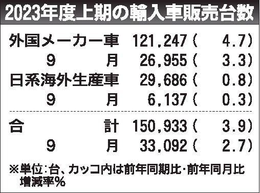 一方、23年9月の外国メーカー車新規登録台数は、前年同月比3.3%増の2万6955台で、2カ月ぶりのプラスだった。