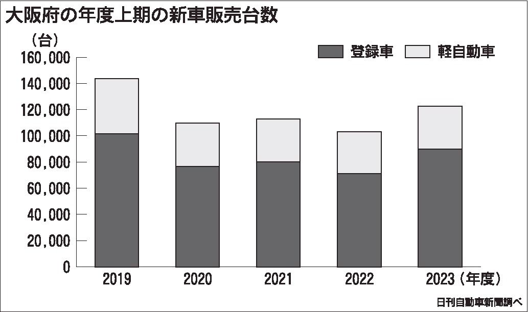 大阪府の2023年度上期(4~9月)の新車販売台数(軽自動車含む、速報値)は、前年同期比19・0%増の12万2802台だった。約14万台だったコロナ禍前の19年度実績には満たないものの、新車供給難の影響が色濃く表れた前期から一転、約2割増...