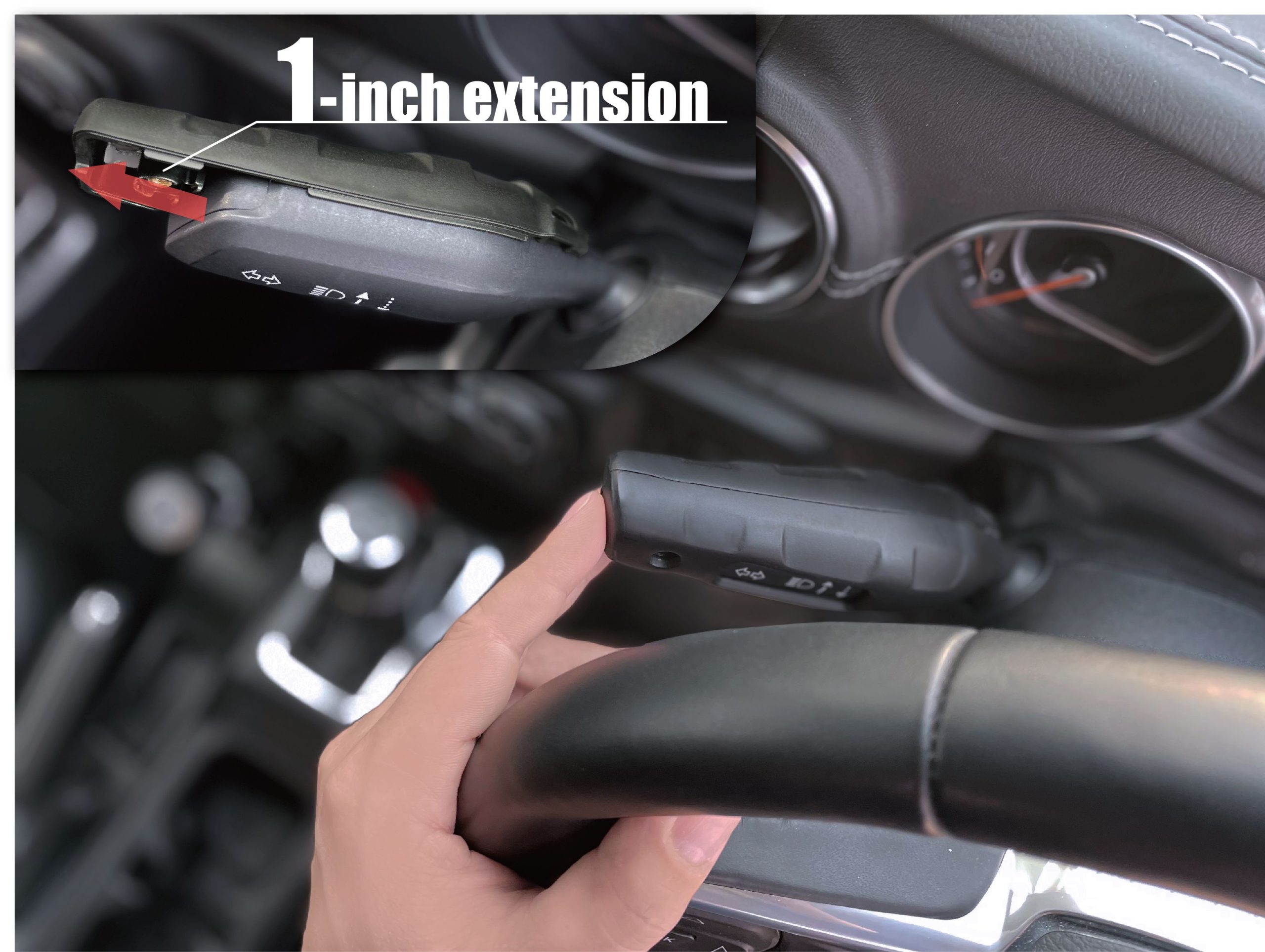 ウインカーエクステンションは、装着することでウインカーレバーの長さを約25ミリメートル伸長し、操作性を大幅にアップさせる。ラングラーは、ステアリングからウインカーレバーまでの距離が遠い上に長さが短いため、日本人の手では扱いづらさを感じることがある。長さを出すことで操作性を向上させるほか、ウインカー操作の重さを約20%軽減する。左ハンドル車、右ハンドル車のいずれにも対応する。