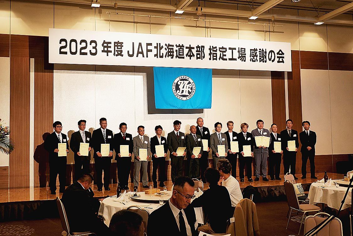 【札幌】日本自動車連盟(JAF)北海道本部(原田彦エ門本部長)は、北海道内のJAF指定工場のうち、6~8月に実施したロードサービス(RS)加入促進キャンペーンで優秀な成績を収めた企業と個人を集めて表彰する「指定工場 感謝の会」を開催した=...