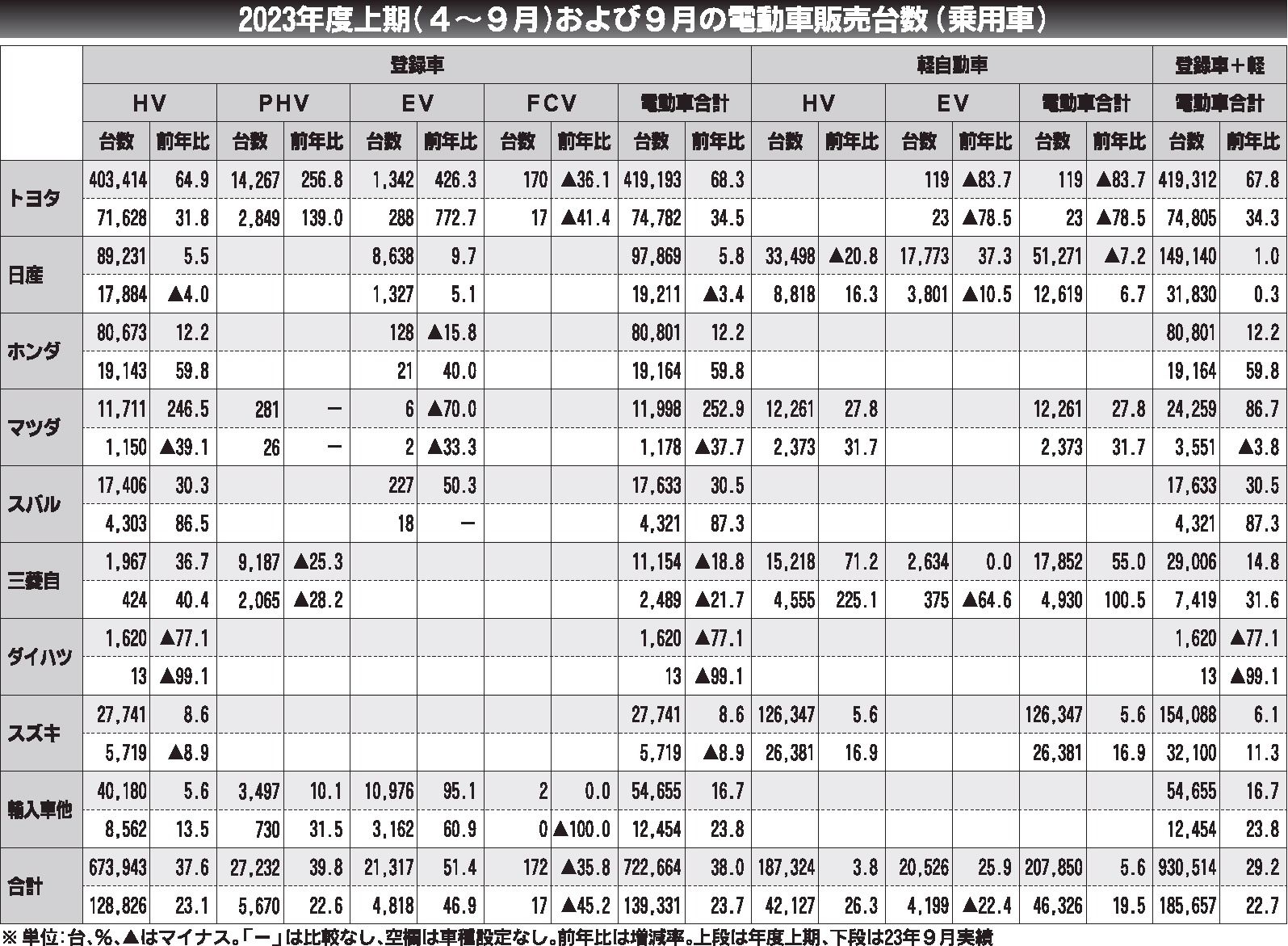 〈2023年度上期(4~9月)および9月の電動車販売台数(乗用車)〉