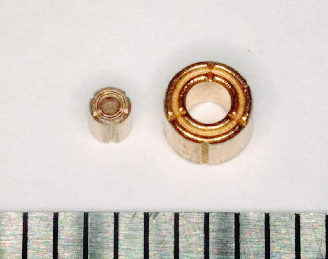 NTNは、流体動圧軸受け「動圧ベアファイト」で世界最小サイズとなる内径0・6㍉㍍の製品=写真左=を開発した。スマートフォンやウェアラブル端末など民生機器の冷却用マイクロファンモーターに加え、車載装置向けにも提案する。2025年度には年間6...