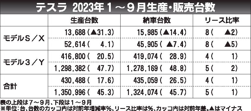 電気自動車(EV)大手の米テスラは19日、2023年7~9月期決算の質疑応答をオンラインで実施した。同期の業績は売上高が販売台数の伸びで前年同期比8・8%増の233億5千万㌦(約3兆5千億円)だったが、値下げの影響で営業利益が同52・2%...