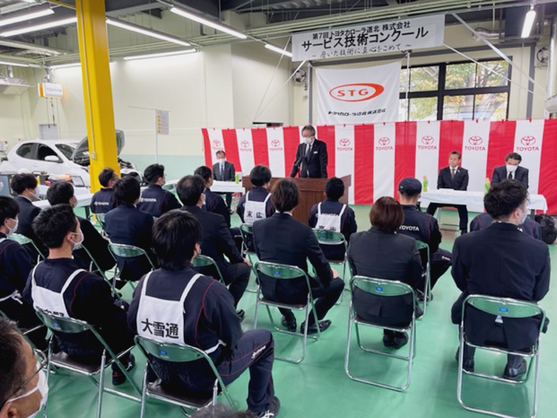 【旭川】トヨタカローラ道北(岡田和人社長)は「社内技術コンクール2023」を本社大雪通店で開催。店長やスタッフら50人以上が応援に駆け付け、鍛錬した技術力を競い合った=写真。競技の結果、エンジニア部門が春名伸吾エンジニア、アドバイザー部門...