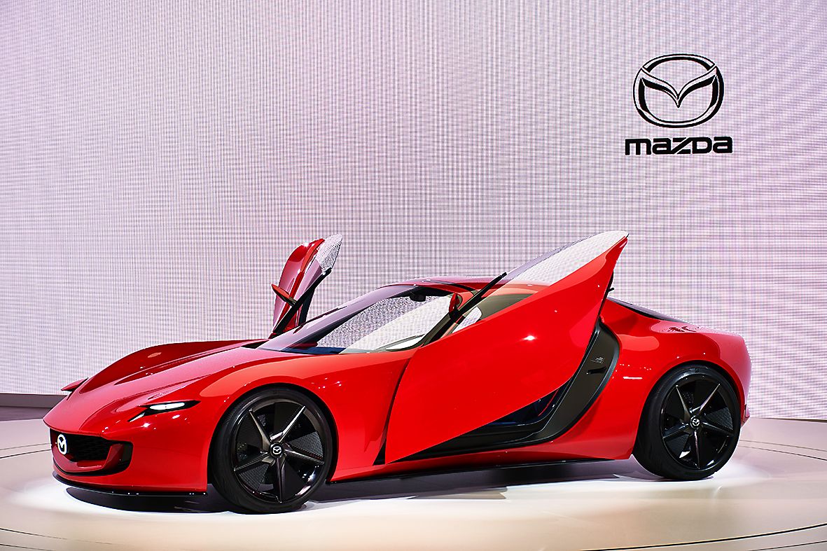 マツダは10月25日、「ジャパンモビリティショー2023」でコンパクトスポーツカーのコンセプトモデル「アイコニックSP」を世界初公開した。カーボンニュートラル燃料で発電するシリーズ式プラグインハイブリッド車で、2ローターの「ロータリーEVシステム」を搭載。1ローターの同システムを搭載する「MX-30 ロータリーEV」よりも高い出力を発揮するのが特徴だ。