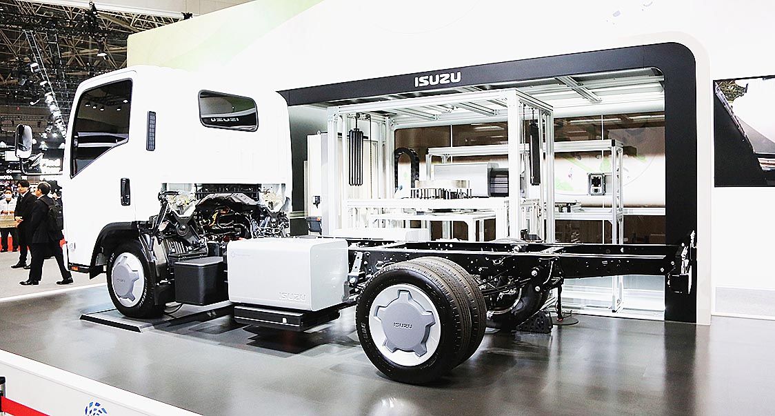 いすゞ自動車は25日、電池交換式電気トラック(EVトラック)と交換ステーション(ST)を世界初公開した。2025年をめどに実証実験を行い、社会実装を目指す。車体側方からバッテリー交換できるため、導入コストを抑えることができるという。 南真...