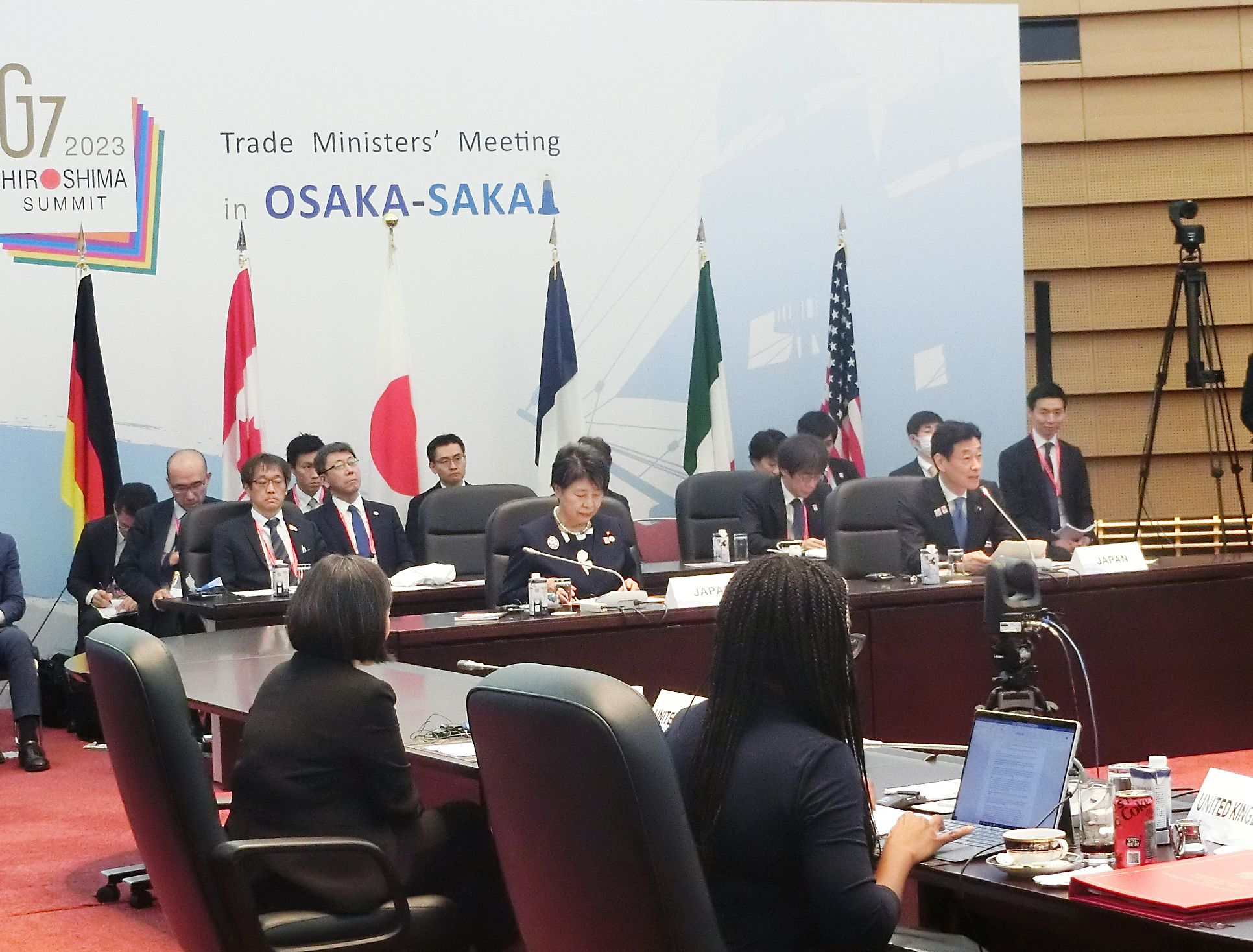 大阪で開かれた先進7カ国(G7)貿易大臣会合は10月29日、閣僚声明を採択し、閉幕した。経済的威圧や不公平な貿易慣行などの動きが強まる中、重要物資のサプライチェーン強靭化には、G7に加えて新興国や民間企業などの連携を強化する必要があることなどを盛り込んだ。世界貿易機関(WTO)を中核に、経済安全保障と自由で公正な貿易の両立・確保に取り組んでいくことも一致した。