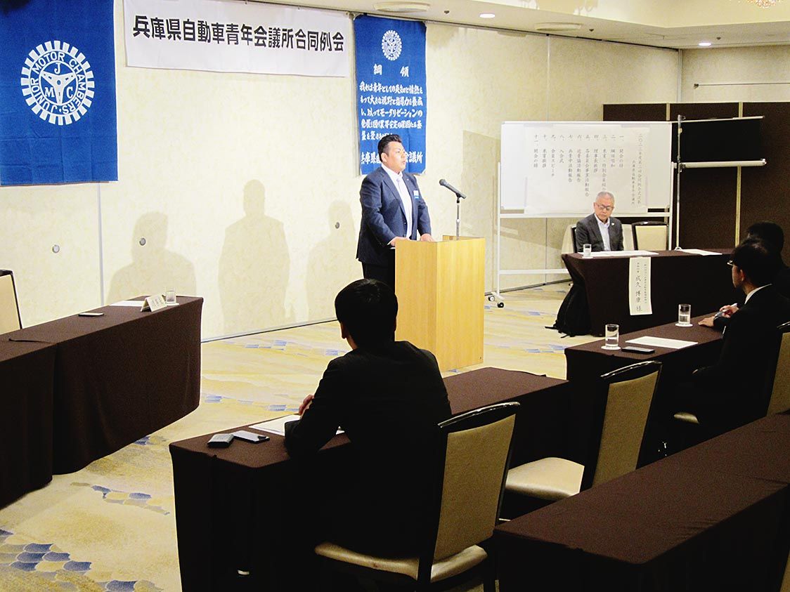 【神戸】兵庫県自動車青年会議所(衣笠仁務理事長)は、明石市内のホテルで「2023年度第2回合同例会」を開催した=写真。例会は3部構成で、1部の式典で衣笠理事長は「今期はこれまでに新入会員が2人入った。残りの期間で、あと3人増やしたい。情報...