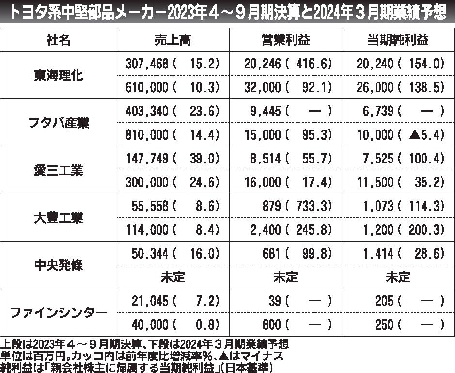 トヨタ自動車系中堅部品メーカー6社のうち、4社が2024年3月期の通期業績予想を上方修正した。トヨタの生産が回復し、今後も高水準の生産が見込まれるほか、原材料・エネルギーコストの転嫁が進んだため。原価低減効果も出ている。中国市場の急速な電...