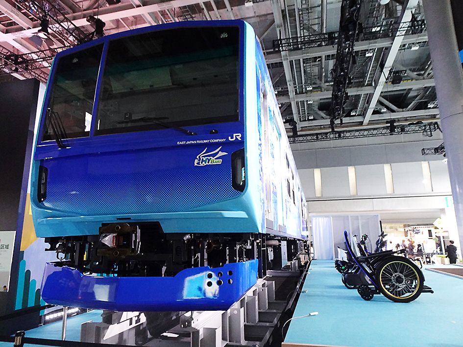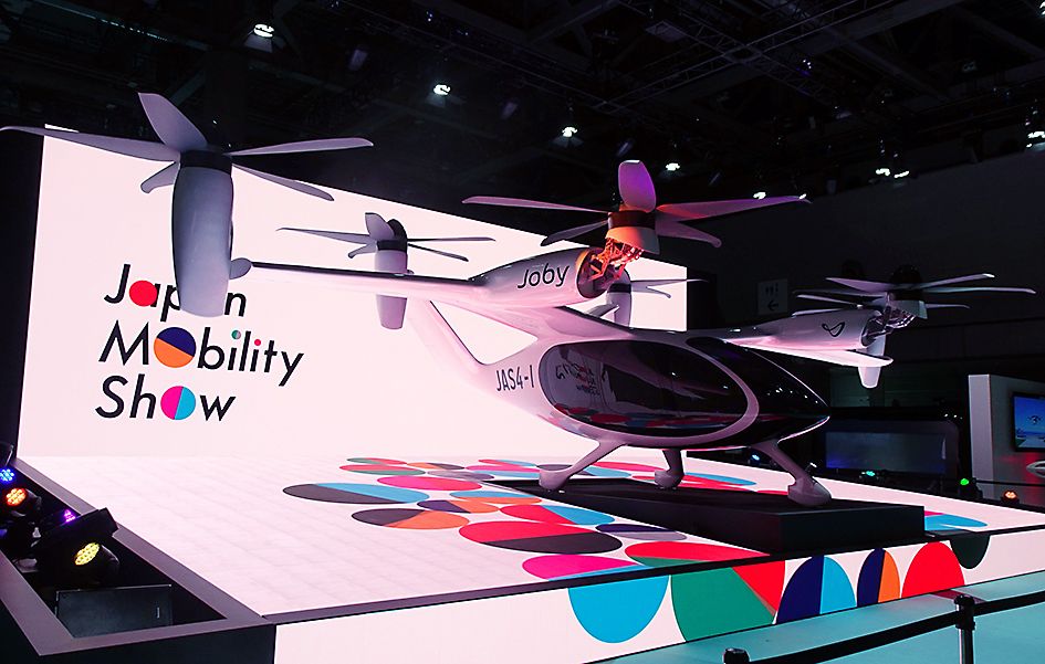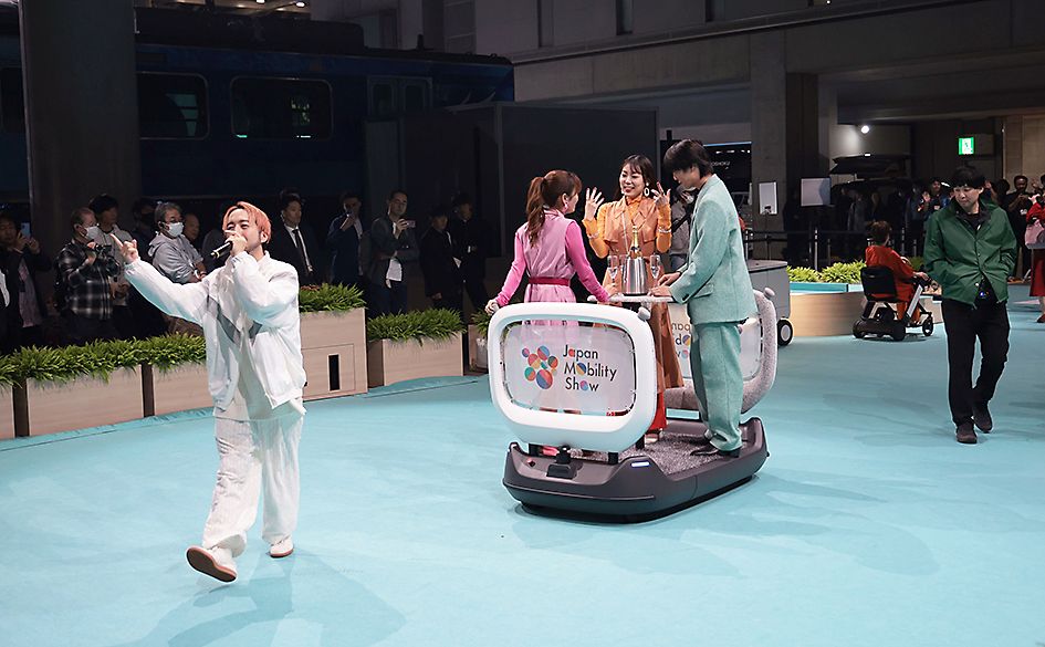 イマーシブシアターを抜けて「ライフ」ゾーンに入ると最初に、パーソナルモビリティとJR東日本の水素ハイブリッド電車「HIBARI(ヒバリ)」が目に飛び込んでくる。さらに進むと、米ジョビー・アビエーションの電動垂直離着陸機「S4」の巨大な機体に驚く。自動車メーカーも参入する月面モビリティまで登場し、気持ちが空に向かった思えば一気に月面にまで連れていかれる。また、メインのショーではさまざまな立場の人がさまざまなモビリティで自由に移動する様子を表現。「ライフ」といっても幅は広いようだ。