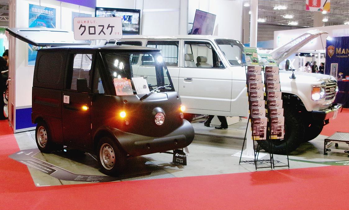 東京ビッグサイトの東展示棟を奥まで進んでいくと出合える超小型の電気自動車(EV)がある。「超小型EV技術研究組合(METAx)」が開発した「XKクロスケ」だ。隣にある「ランドクルーザー」と比べると、まるで大型犬と子猫が仲良く並んでいるよう...