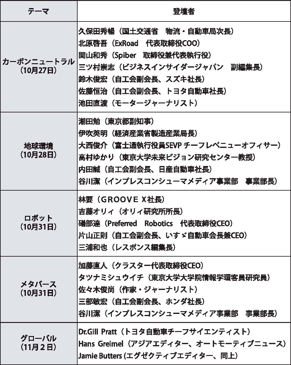 「ジャパンモビリティショー2023」で、「モビリティと未来」をテーマにした連続トークショー「ジャパンフューチャーセッション」が開かれた。「カーボンニュートラル(温室効果ガス排出実質ゼロ)」「地球環境」「ロボット」「メタバース」「グローバル...