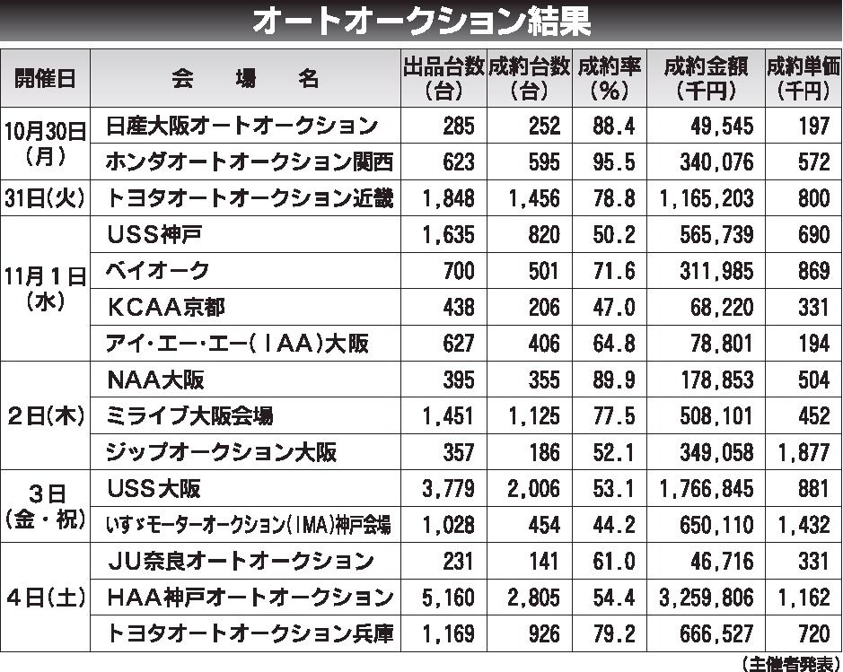 〈オートオークション結果〉近畿地区 2023/10/30~11/4