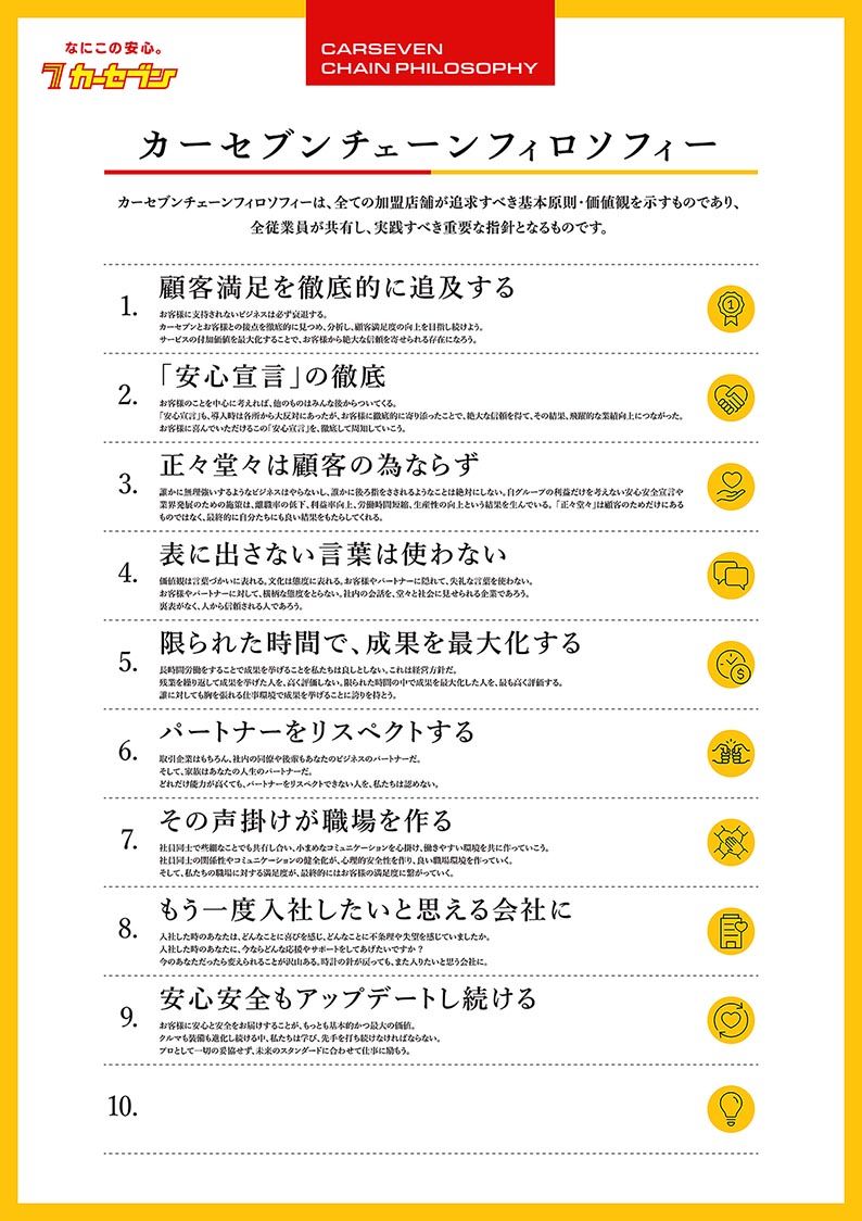 中古車査定、買い取り、販売などを手掛ける全国チェーンのカーセブンは、加盟店で共有する基本原則、価値観「カーセブンチェーンフィロソフィー」策定のめどがついたことから、全店舗での年内運用をスタートさせる方針だ。フィロソフィーに基づいた店舗運営...