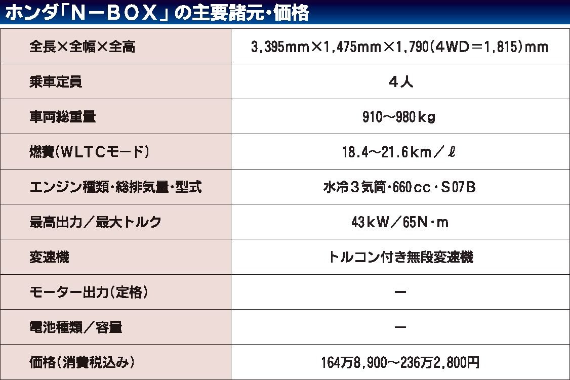 ホンダは、国内向けモデルの中で最量販車である「N―BOX(エヌボックス)」を6年ぶりにフルモデルチェンジして販売開始した。モデル末期でも順調な販売を続けてきただけに外観に大きな変更はなく、プラットフォームやパワートレインも先代から流用した...