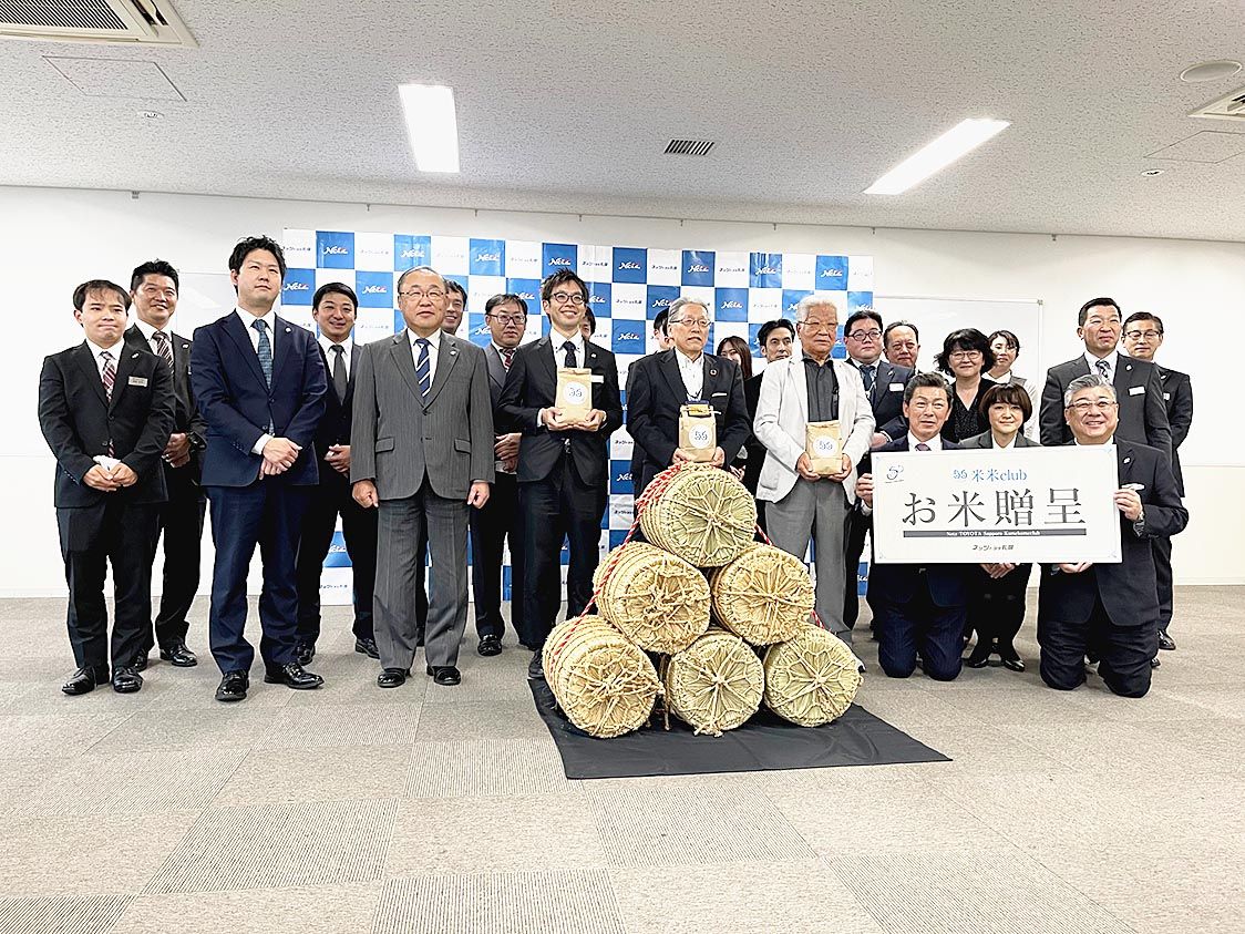 〇…ネッツトヨタ札幌(鎌田直之社長)は創業55周年記念事業の一環として、農業体験プロジェクトで収穫した米の寄贈式を本社で開いた。顧客らに合計1㌧を贈った。 〇…「米米」企画で社員やOB、顧客が春から秋にかけ田植えから稲刈りまで体験。脱穀し...